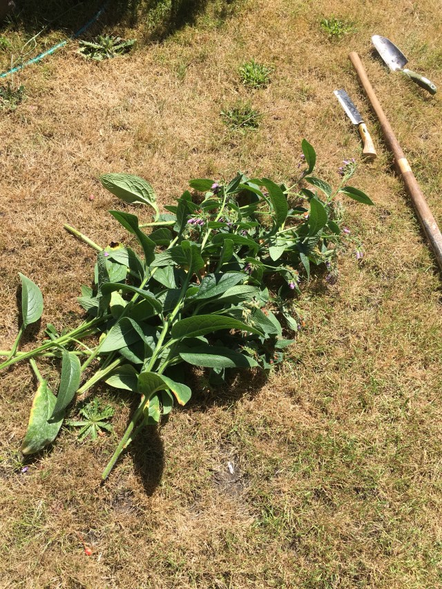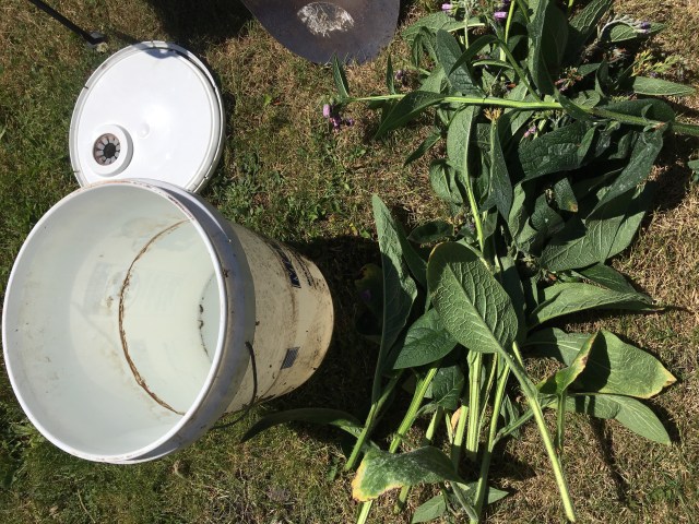 I’ll add the remnants of the comfrey tea to our compost, to add further benefit to our soil-making efforts.